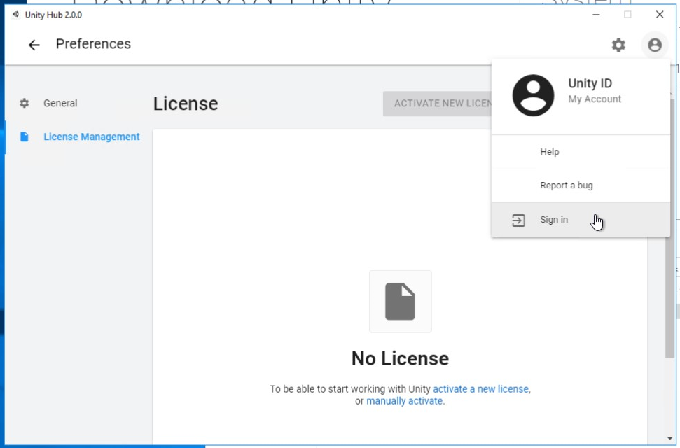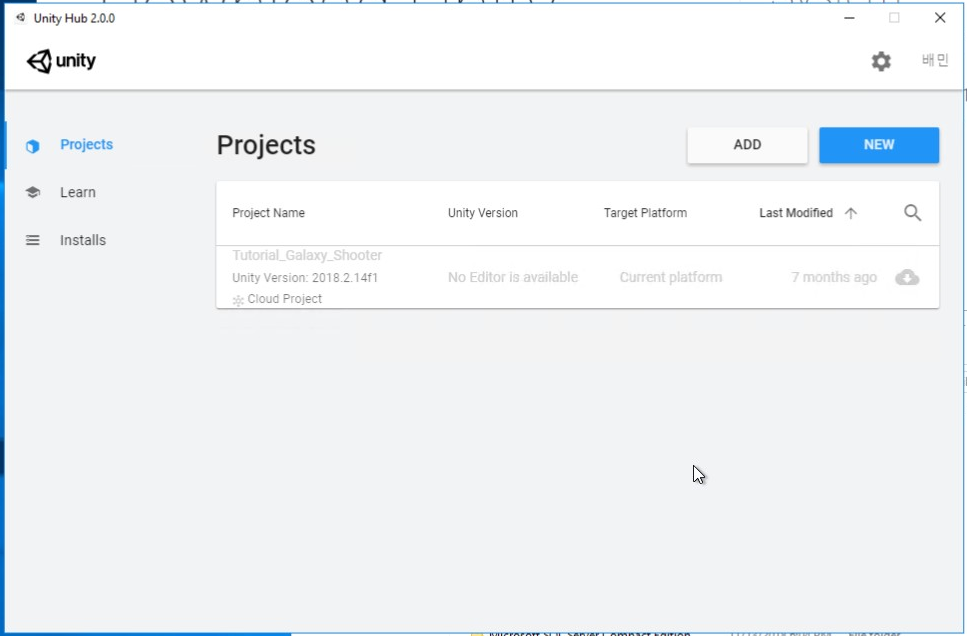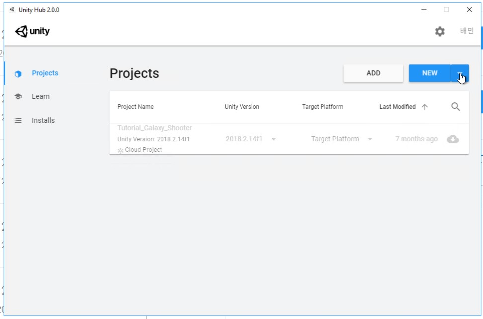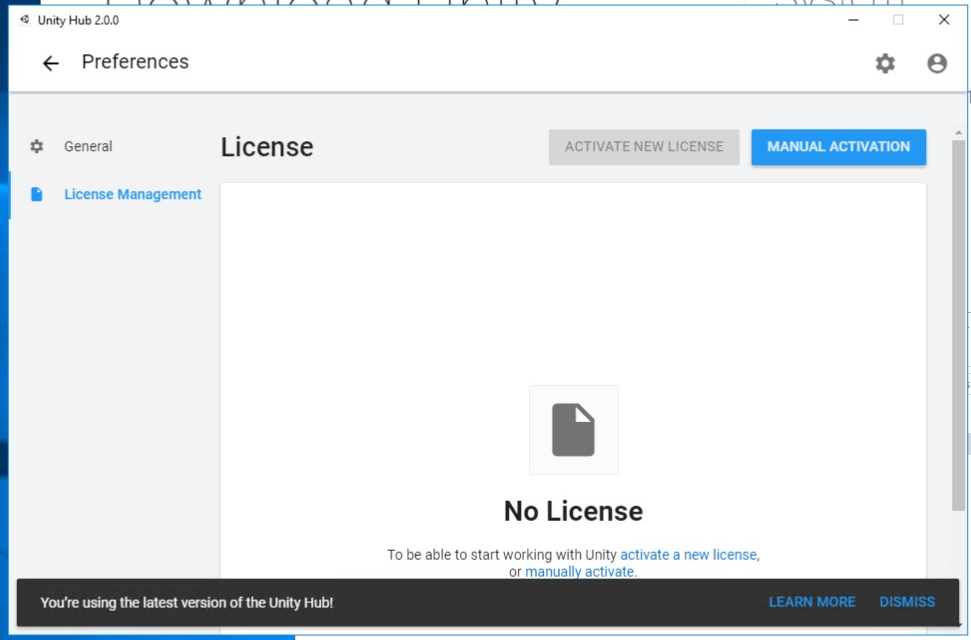 - now you can see the main screen of Unity Hub