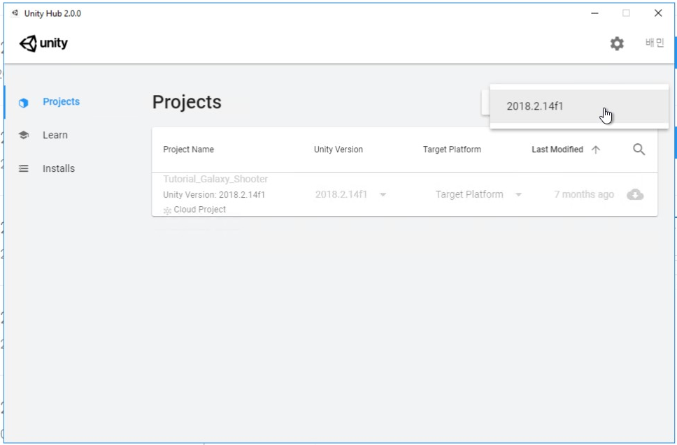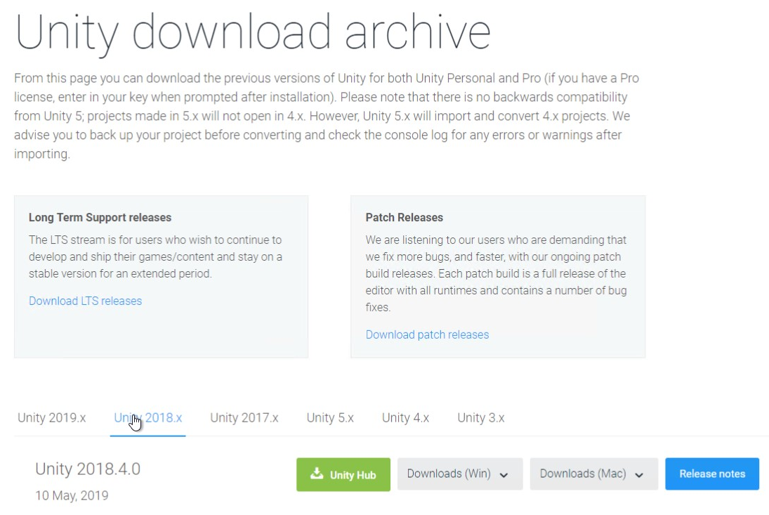 - click "Unity 2018.x"