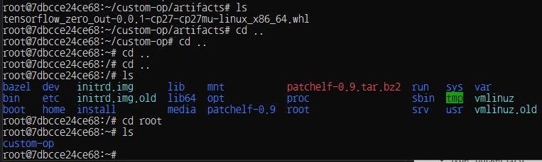 - in my case, it was "docker cp 7dbcce24ce68:/root/custom-op/artifacts/tensorflow_zero_out-0.0.1-cp27-cp27mu-linux_x86_64.whl d:/_downloads"