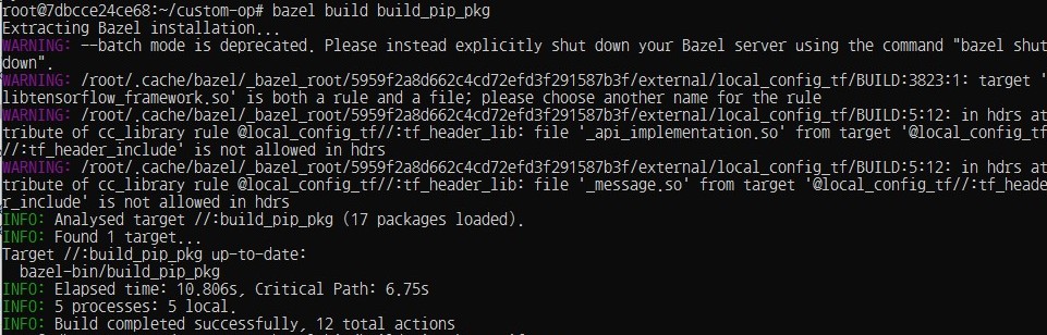 - type "bazel build build_pip_pkg" and "bazel-bin/build_pip_pkg artifacts"